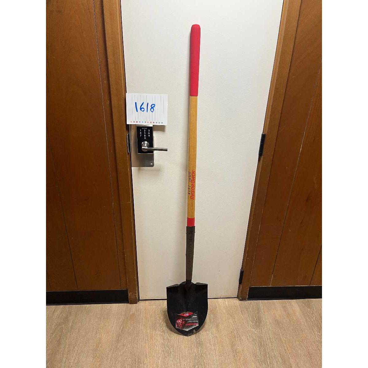 Razorback shovel with red handle
